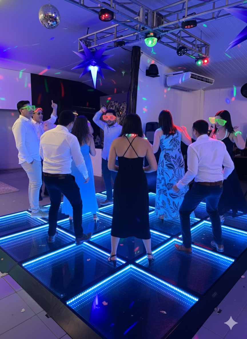 O DJ realiza a cobertura total da festa por até 6 horas, participando da cerimônia e oferecendo estrutura com pista de dança de Led, microfones sem fio e data show. O ambiente é climatizado, com salão exclusivo do Buffet Jacarandá. Entre os diferenciais, contamos com barman e carta de drinks (inclusive sem álcool), além de bebidas como sucos, refrigerantes, água e cerveja Original. E para encerrar com chave de ouro, oferecemos como brinde exclusivo nosso famoso sorvete italiano de casquinha feito na hora – um sucesso entre os convidados.